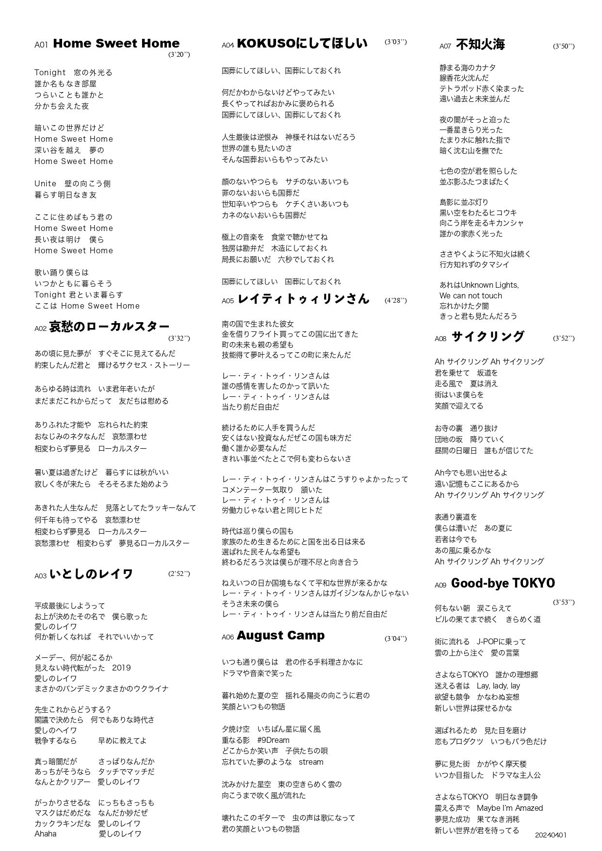 ライナーノーツと歌詞カードはPDFでダウンロードできます。