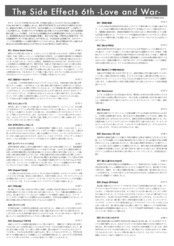 サイド・エフェクト6作目アルバムです。21世紀には珍しいコンセプトアルバムと位置づけ、"Love and War"という副題にしました。前作が2022年6月でしたので2年ぶりの新作となりました。新曲は次々発生していたのですが、なかなか録音とミックスが進まぬままずーっと制作していた2年間でした。その間ウクライナでの戦争に加え中東イスラエルのガザ侵攻、日本では首相暗殺など暗いニュースが続き、このアルバムの収録曲もそれらの影響を如実にうけることとなりました。制作期間の長さはそのまま楽曲数に影響し、気がつけば18曲。LP時代なら2枚組ですが、CDの収録限界ギリギリで1枚に収めることができました。でも気分的には2枚組です。このライナーノーツでもA面B面といった表記で進めていくことにしました。僕らが丹精込めて作った曲たちが皆さんの人生のお供に加わることができたらこんなに幸せなことはありません。